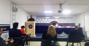 Akdeniz Karpaz Üniversitesi’nde 21-25 Aralık Milli Mücadele ve Şehitler Haftası etkinlikleri kapsamında düzenlenen “Kıbrıs Türk Mücadele Tarihinde 21 Aralık” Paneli gerçekleştirildi. Panel, saygı duruşu ve ardından İstiklal Marşı’nın okunması ile başladı. Program akışında, AKÜN Rektör Yardımcısı Doç. Dr. Tolga Öz açılış konuşmasını gerçekleştirdi. Sonrasında ise panelistler Dr. Hasan Topal, Dr. Çağın Zort ve Araştırmacı -Yazar İsmail Bozkurt sırasıyla konuşmalarını dinleyicilerle paylaştılar.